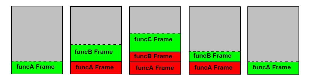 Chaque stackframe va contenir la plupart des variables utilisées par la fonction.