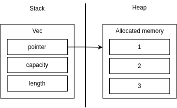 Exemple: La structure Vector en Rust, qui est un tableau contigu de taille variable (l'équivalent d'un ArrayList Java, ou d'un.. vector en c++).